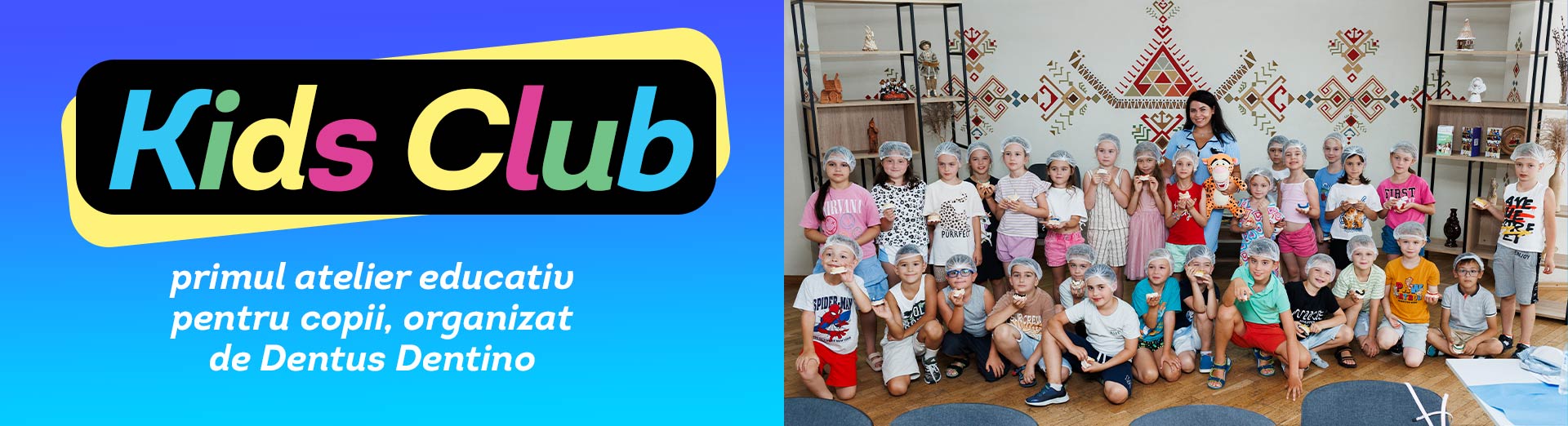 Dentus Dentino a dat startul unei inițiative superbe: primul atelier educativ pentru copii – Kids Club, creat pentru a promova: igiena dentară, periajul dentar corect, importanța vizitelor regulate la medicul pedodont (stomatolog pentru copii) și a transforma sănătatea dentară într-o aventură distractivă.