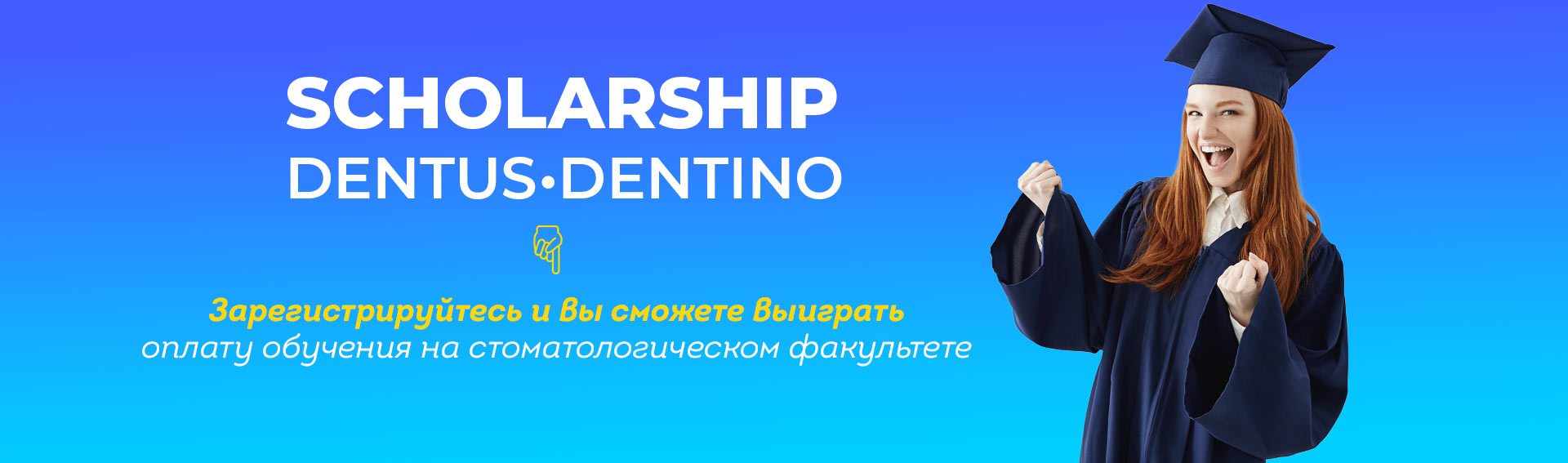 Мечтаете стать стоматологом, но беспокоитесь о стоимости обучения? SCHOLARSHIP DENTUS•DENTINO – ваш шанс! В рамках этой программы мы предлагаем финансовую поддержку молодым людям, увлеченным стоматологией, оплачивая обучение за один учебный год на стоматологическом факультете.